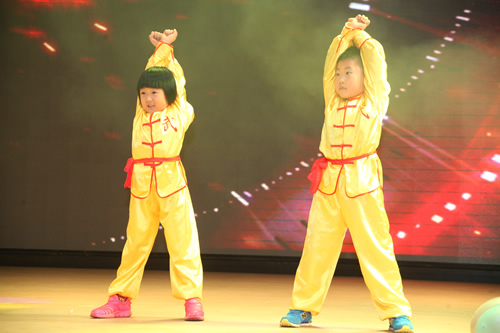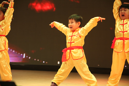 附二代的节目让人赞不绝口。幼儿园的孩子们穿上整齐划一的练功服,活灵活现地演绎了《精忠报国》的精髓。小学的孩子们跳的街舞《舞动青春》,动作难度相当大,让台下观众都不由自主地为孩子们欢呼喝彩!
