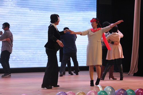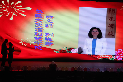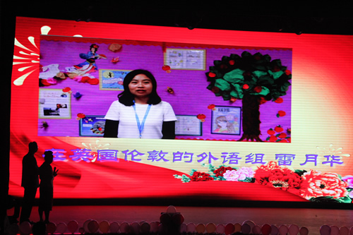 高一年级组把老师们分成了“阴柔”和“阳刚”两大阵营,女老师们演唱的《甜蜜蜜》和男老师们演唱的《真心英雄》,一柔一刚,相得益彰,引起了台下观众的阵阵掌声。