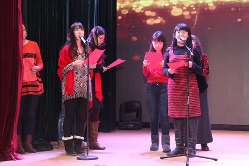 接下来的迎新年教师才艺展在校合唱团的《教我如何不想她》中拉开序幕。同学们婉转悠扬的歌声犹如百灵鸟一般,唱进了每一个的心里,让大家心潮澎湃。