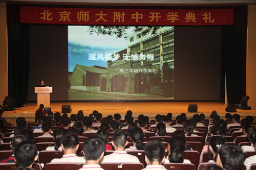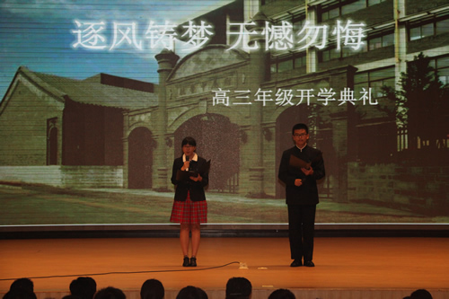 9月7日下午,我校高三年级在百年会堂举行了以“逐风铸梦 无憾无悔”为主题的开学典礼。王莉萍校长等学校领导和高三年级全体教师参加了开学典礼。
