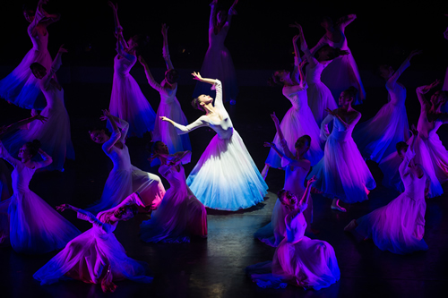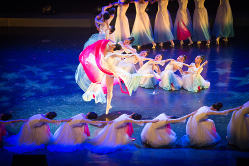 彩云追月是中国传统意象之一,同名乐曲更是家喻户晓。此舞正是描绘了在幽深却不暗淡的夜幕下,云月相逐,相映成趣的景象。抒发了同学们对艺术,对美的追求。
