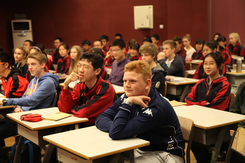 4月10日,来自英国Tarporley High School & Sixth Form College的66名师生来校访问。李敏副校长致欢迎辞并与友好校负责人Mike Hutchinson一行进行座谈。上午,英国师生和我校高一的同学们开展了生动有趣的课程活动。双方用英语互相介绍了各自的文化特色、学校生活和课余活动,以及中学生的烦恼,课堂上互动不断、笑声连连。短短的两节课,英国的同学们就已经跟他们的中国小伙伴成为朋友。下午,英国师生还体验了我校的国画和脸谱绘制课程。独特的中国传统文化给学生们留下了深刻的印象。随后,英国同学们在我校体育老师的带领下还进行了一次别开生面的太极拳学习。几位友好校的带队老师也纷纷兴致勃勃加入其中。期间、刘沪校长与英国师生亲切交流并合影留念。