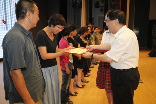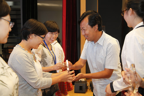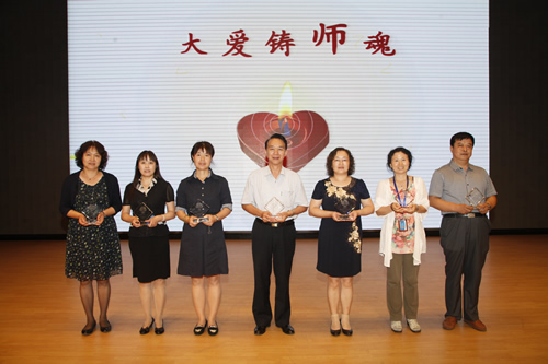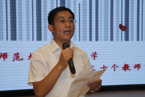 大会伊始,刘沪校长做了热情洋溢的教师节致辞。刘校长回顾并高度赞扬了在学校百年发展历程中涌现出来的一批又一批师德高尚、业务精湛的附中教师;同时,刘校长展望未来,希望在新的历史时期下,同在蓝天下的附中人继续秉承“诚爱勤勇”的校训,不断创新,做有理想信念、有道德情操、有专业素养的爱护学生的优秀教师,力争“人人成专家,师师做名师”,创造让学生和家长满意的全人格教育新的辉煌。