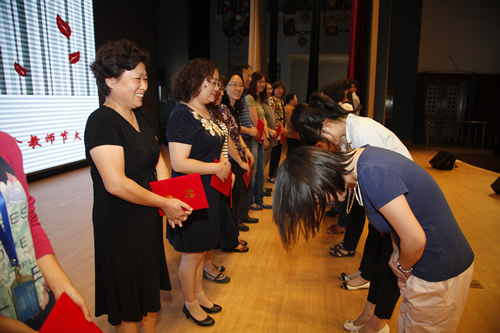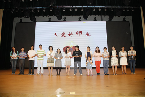 这是我校“大爱铸师魂”——庆祝第30个教师节大会的场景之一。