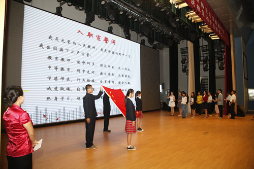 9月10日下午四时,在无关键词礼堂,13名附中新入职教师在国旗下庄严宣誓:
