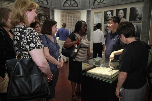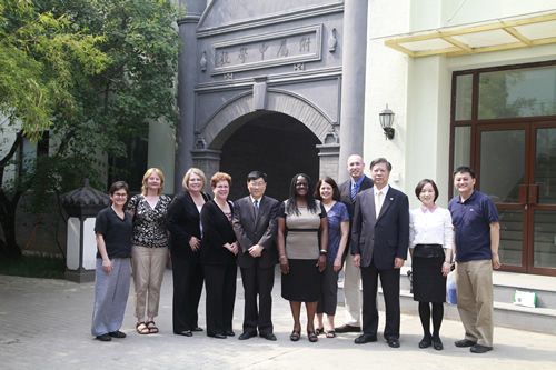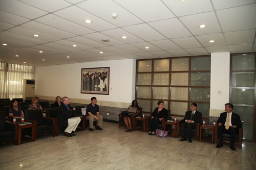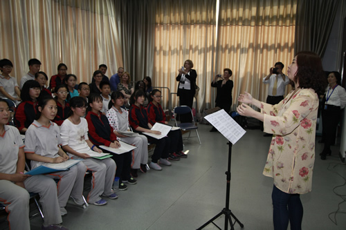 5月19日,在中国国际交流协会林佐平副秘书长的带领下,美国康州ACES特别学区常务副局长一行7人来校访问。刘沪校长与来宾们亲切座谈,就中美学校教育的发展现状及未来的合作模式进行了深入探讨。来宾们还参观了学校文化设施,观摩了合唱团的排练,优美的歌声使来宾们久久驻足欣赏。