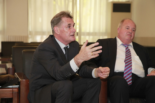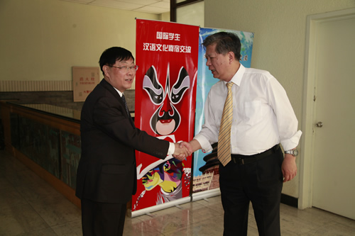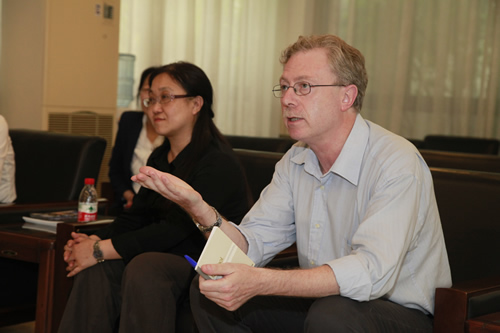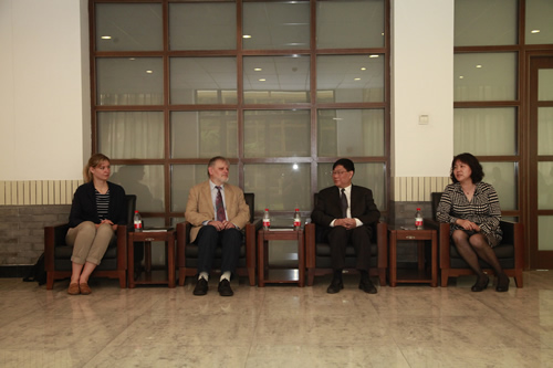 当天,在法国大使馆文化教育处李海先生的陪同下,法国汉语总督学、数学总督学、法语及法国文化总督学、巴黎学区教育代表来校交流访问。刘沪校长会见了法国客人。我校从2012年9月起开设法语选修课,目前有2位法国外教在校工作, 40多位初高中学生及老师学习法语;2013年3月我校还与法国亨利四世学校缔结为友好学校。我校的法语教学以及与法国学校的合作受到来宾们的高度关注,他们此行也是到校做进一步调研,想为学校提供更多帮助,促进中法教育教学的深入合作。来宾们对刘沪校长提出的学校国际化、多元化发展战略表示赞同、对学校重视法语教学表示感谢。我校法语外教高铁先生,交流中心徐兰主任、顾洁老师、刘文丽老师一起参加座谈。