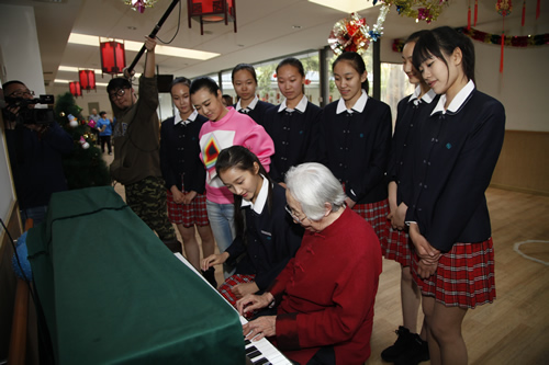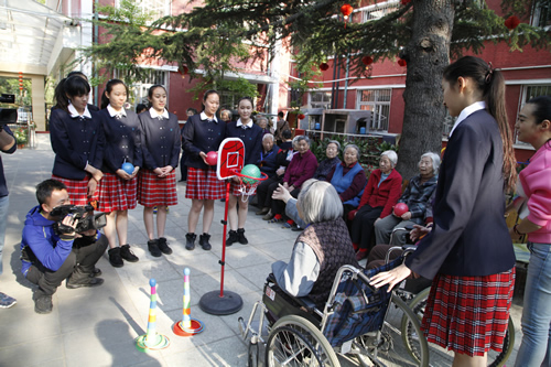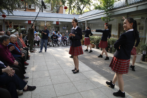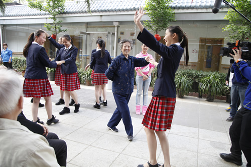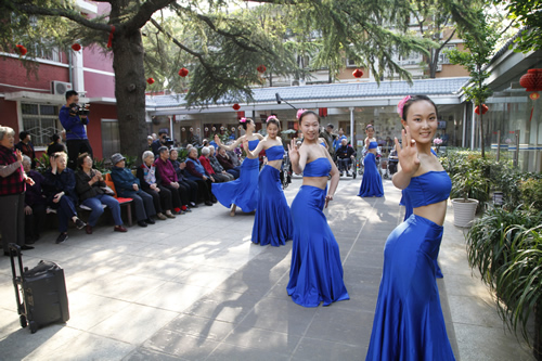 在同学们表演之后,老人们高兴地和师生们一起跳起了交际舞,敬老院内一片欢声笑语,场面温馨而热烈。在活动中,舞蹈团的同学们将关爱传递给了在场的爷爷奶奶们,老人们都说,看到这些可爱的姑娘们感到由衷的高兴,欢迎她们今后再来!在度过了一个充满温情和欢笑的下午后,这次活动在依依不舍的气氛中圆满结束。