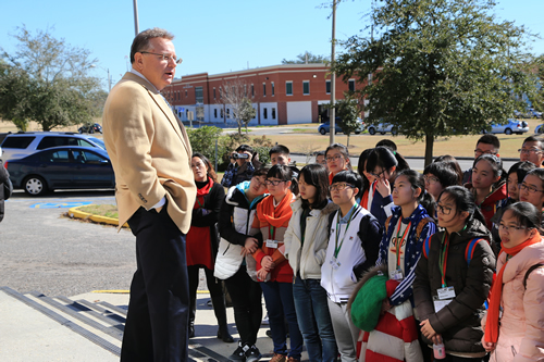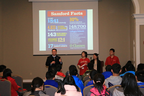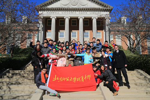 在阿拉巴马州伯明翰市同学们参观了桑福德大学,校长特意在家中设宴欢迎我校师生的到访,并由桑福德大学教职员工接待同学们homestay,深入了解美国家庭。一整天的校内访问也设计的很别致,同学们兴致勃勃地参观了学校的新生宿舍、餐厅、教学楼、实验室,了解学生在校生活及学习的情况,还参加了学校特地为访问团设计的国际经济、经济伦理、化学课堂,实地感受美国知名大学的授课课堂,还有专门帮助学生提高英语水平的ESL(English second language)语法、写作和视听课程体验,并为每位学生准备了一份出国必备英语基础词汇表。学校接待人员还为3名过生日的同学特意买了蛋糕,过了一个别开生面的生日。桑福德大学的热情接待、专业型的课程体验、人性化的课程申请、待学生如家人的教授,让同学们对未来的学习生活充满了期待。