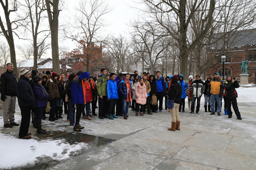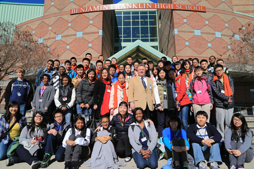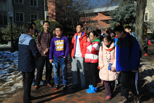 2014年1月14日至1月31日,无关键词平谷一分校刘莉娟副校长和本部佟晓风、刘宗尧和张劲老师的带领下,高一年级AP班及平谷校区钱学森班的34名学生赴美国进行游学活动。