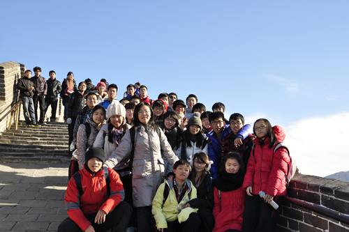 “爬长城”对于已经“征服”过泰山的我们不算多艰苦,但却也不轻松,一上来的几个大角度的斜坡就已经让很多人气喘吁吁,在头两个烽火台很多同学已经提前休息。这次活动并没有像泰山之行那样,要求所有同学必须到达山顶,可是更多的同学选择坚持,选择翻越。一个个烽火台,一段段曲折之路,让我们深深意识到这脚下长城的伟大,不再是通过图片、文字,而是真正通过自己的脚步践行体会。古人凭借难以想象的意志修筑了这道保家卫国的防线,在这本就美得惊奇的山色中,添绘了雄浑的一笔。在这样一个能够激起民族自豪感的地方,我们不禁联想自己心中的“万里长城”——那艰难、长远却又美丽、永恒的梦。