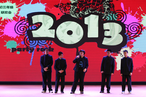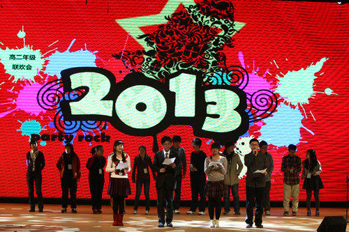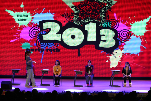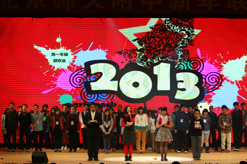 2013年12月28日、29日,附中校园内载歌载舞,各年级分别迎来了在新装修后的“无关键词礼堂”的第一次新年联欢会。崭新的礼堂让大家眼前一亮,更先进的屏幕、动态的背景和电子音响设备为我们提供了更优越的环境。