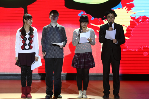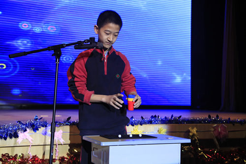 校领导在百忙之中来到礼堂向同学们致以亲切的问候,刘沪校长为大家做了热情洋溢的新年致辞。最令大家惊喜的是,校领导献歌一曲《我的中国心》为联欢增添了一抹亮色,唱出了大家共同的“附中心”,也表达了对附中美好未来的企盼与祝福。