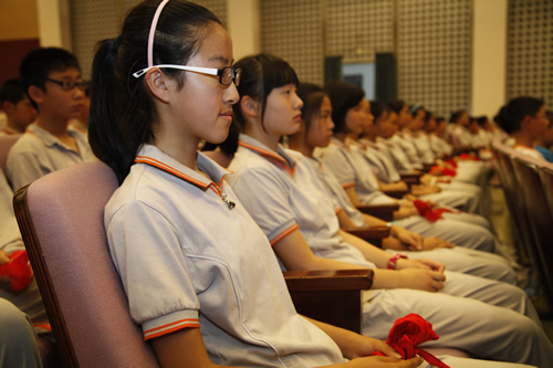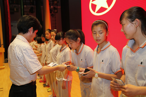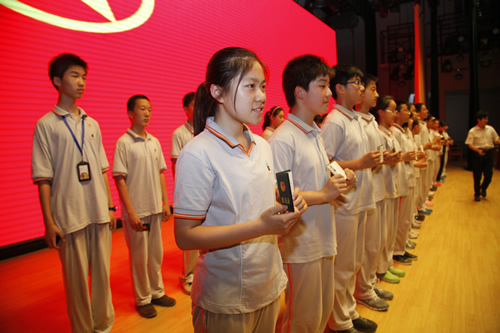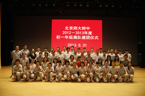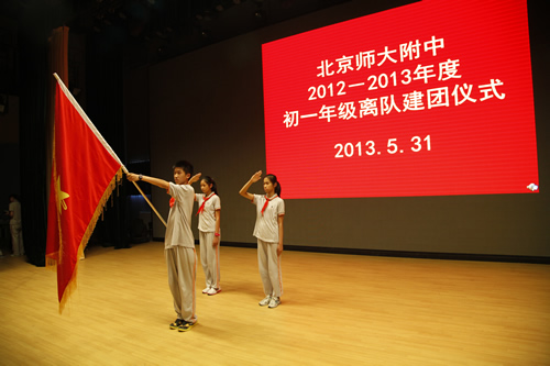 2013年5月31日,在无关键词礼堂,初一年级举行了离队建团仪式。初一年级的同学摘下了红领巾,告别了六年的少先队生活。初一年级40位同优秀的同学在慷慨激昂的团歌声中,光荣地成为了第一批新团员。此次离队建团仪式在程序上进行了一些修正和创新,初一年级四班、五班、八班的几位同学的短剧生动形象了阐述了团的历史和三代人的决心和行动;初一二班的微电影《象限》从学校中的小事入手,在一次圆满成功的解决了同学之间的小矛盾后对自己的人生态度有了最终的选择。梁原草副校长与教导处况莉主任参加了此次离对建团仪式,梁校长对新团员们寄予了殷切的期望,同时希望其他同学继续努力,早日成为共青团的一员。