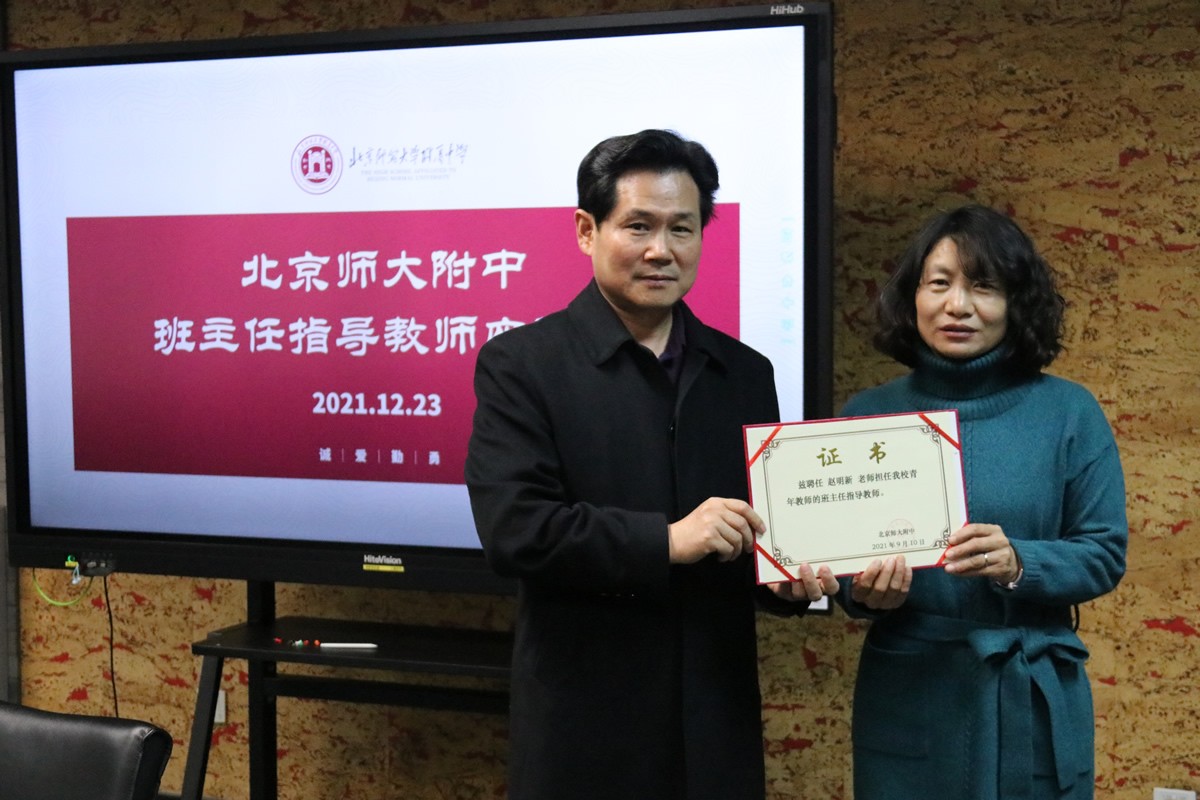 会议伊始,梁校长为每位指导教师颁发聘书,并指出当前学校班主任队伍的特点:一支学习型班主任队伍正在形成,一批青年班主任正在快速成长,同时青年班主任在工作和成长中也面临着很大的困惑。班主任指导教师是青年班主任成长的引路人,要做好青年班主任的帮扶、指导、引领工作,所以本次会议聚焦在两点:一是根据指导青年班主任工作的实际分析青年班主任面临的困难与挑战;二是指导青年班主任的方式与经验的分享交流。