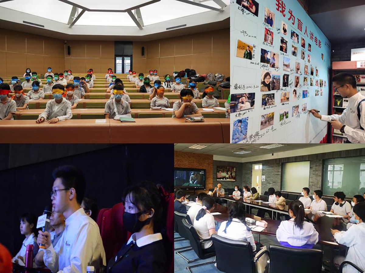 接着,优秀志愿者代表杨舟同学分享了她参与红丹丹心目影院志愿项目的感受。2021年6月20日,5名志愿者在保利国际影城天安门店心目影院进行了首次电影讲述活动,这是首次由中学生来担任电影讲述人,他们为盲人朋友用心灵欣赏感悟电影艺术的魅力创造了新机会。