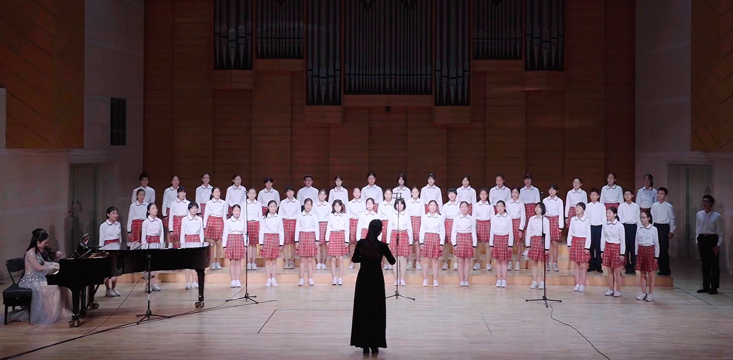 初中合唱团的参赛曲目为《十送》和《牧马之歌》。《十送》是根据江西民歌《十送红军》改编而成的一部颇有难度的同声合唱大作,对我校初中团是一个全新的挑战。从“一送”的朦胧愁绪、“三送”的山歌悠扬,到“五送”的喜庆回忆、“七送”的依依不舍,再到“九送”的殷殷期盼,和“十送”拨云见日的辉煌,经典民歌旋律在各声部间交织推进,细腻地表现出送别的复杂情感,以及对光明未来的信念。整部作品充满了极致的中国式浪漫。《牧马之歌》是一首充满新疆音乐风格的同声四部合唱,同学们以灵动活泼的歌声,唱出了牧马人对草原的热爱和对生活的赞美。