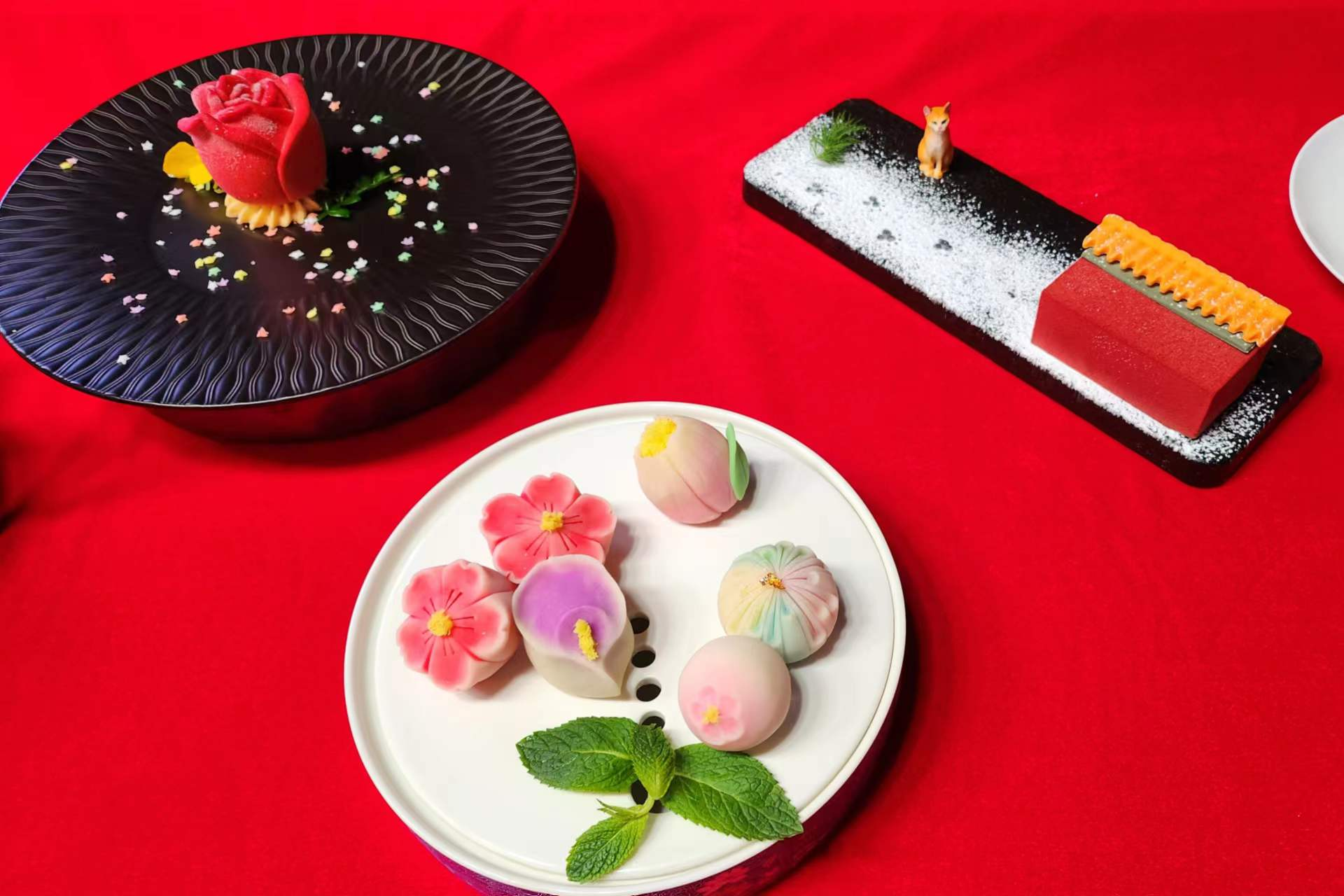 试吃环节更是极富趣味性,模仿烤鸭卷的蛋糕、杯口粘盐的颜色饮料都充满着创新的气息,在古典中透露出“潮”气。