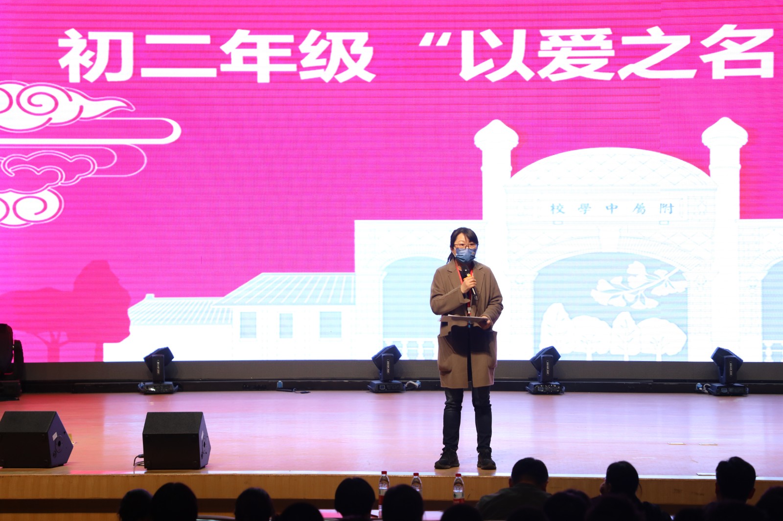 2023年4月11日,我校初二年级召开了“以爱之名”演讲比赛,许建勇书记、梁原草副校长、吴学宁主任、张建彬主任、张明瑶主任、白朝鲁副主任、陶晓苏老师、张晓月老师、王静老师出席本次大赛并担任评委,其中王静老师组织部分班级在南阶梯分会场观摩比赛。