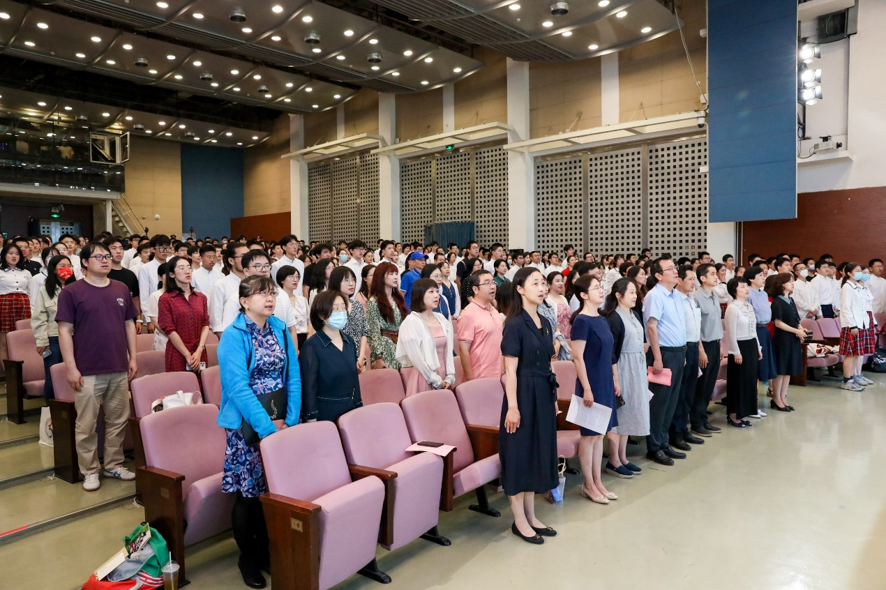 骊歌已经响起,新的征程即将启航,高三全体师生把别离之际的千言万语化成歌声,让属于附中的旋律,再一次响起,毕业典礼在悠扬的校歌声中落下帷幕。