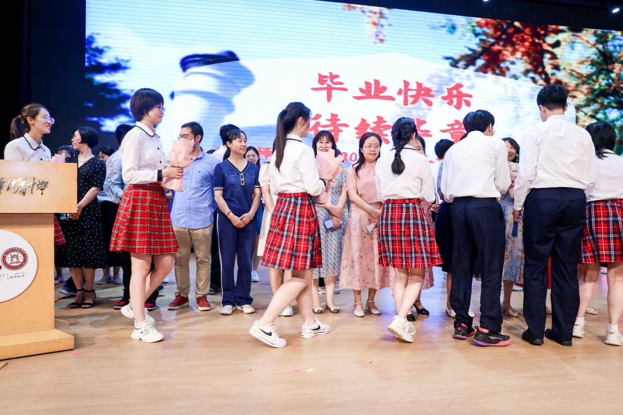 接下来的学生节目再次将毕业典礼推向一个高潮。歌曲串烧节目表达了同学们对于青春岁月的怀恋、对于师长的感恩、对母校的赞美。尤其是节目结尾部分各班同学送给老师们的临别赠言和真挚深情的告白,感人而不失幽默,让在场的老师们感动落泪。