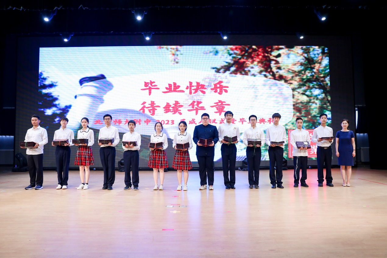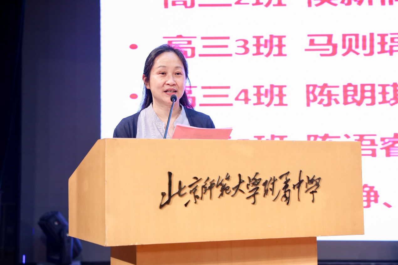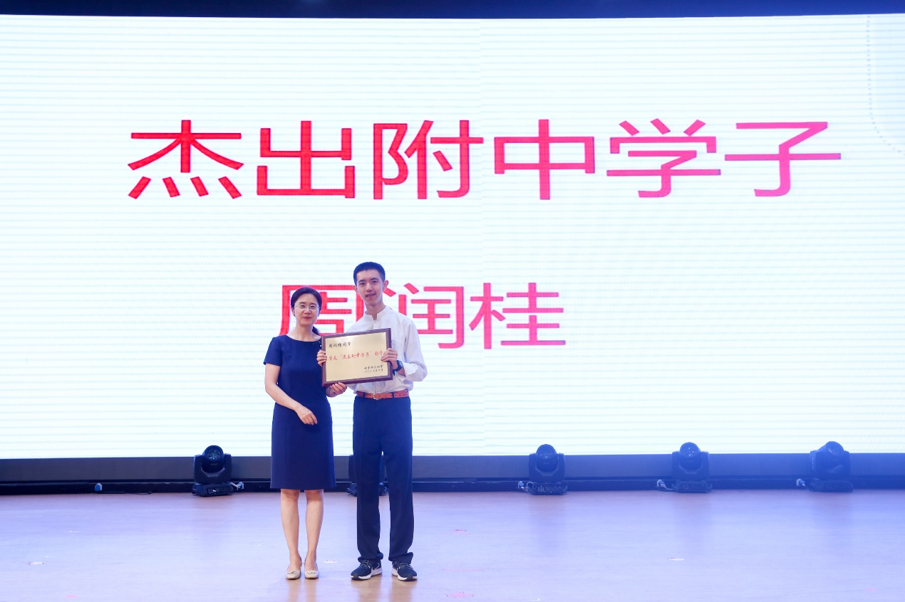 随后,梁原草副校长宣读市级区级三好优干、杰出附中学子和先进班集体的获奖名单,学校领导为这些获奖同学及班级颁发了奖状。