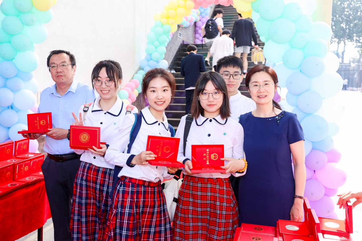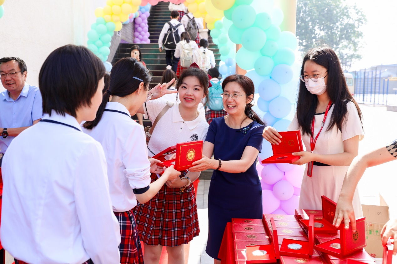 2023年6月20日无关键词为高三毕业年级的同学举办了隆重的毕业典礼。全体校领导、高三年级教师、高三全体毕业生出席了本次典礼。典礼开始前,王莉萍校长和许建勇书记在礼堂入口处为每一位入场的毕业生亲手递上了毕业礼盒并送上祝福,同学们纷纷在此与校长、书记合影留念。红色的地毯,彩色的气球门,以及精心准备的毕业礼盒——毕业纪念币与简装宪法,无一不传达着附中对每一位毕业生开启人生新篇章的美好祝福。