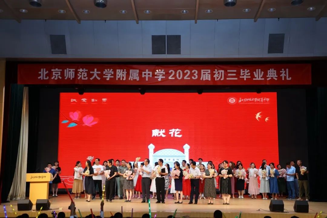 顾咏梅副校长宣读了全体初三毕业生名单,班级代表依次上台,郑重地从王莉萍校长手中接过毕业证书。梁原草副校长宣读了北京市、西城区三好学生和西城区先进班集体的名单。会场热烈而经久的掌声为这些优秀的附中学子和班级送去了祝福。