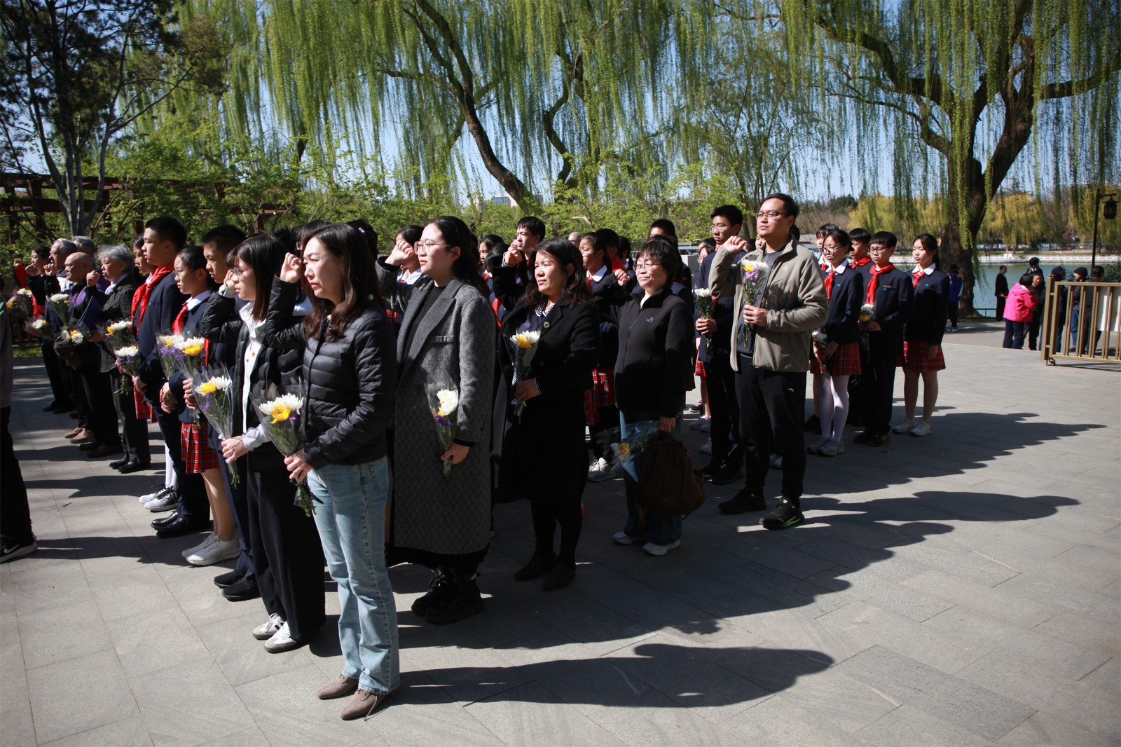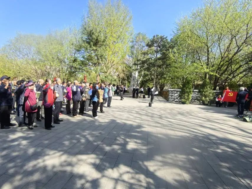 清明时节的陶然亭公园松柏凝翠。4月2日下午,我校初一年级党员教师和少先队员代表怀着无比崇敬的心情,来到陶然亭高君宇烈士墓前与新兴里社区的党员们共同举行了祭奠英烈活动。