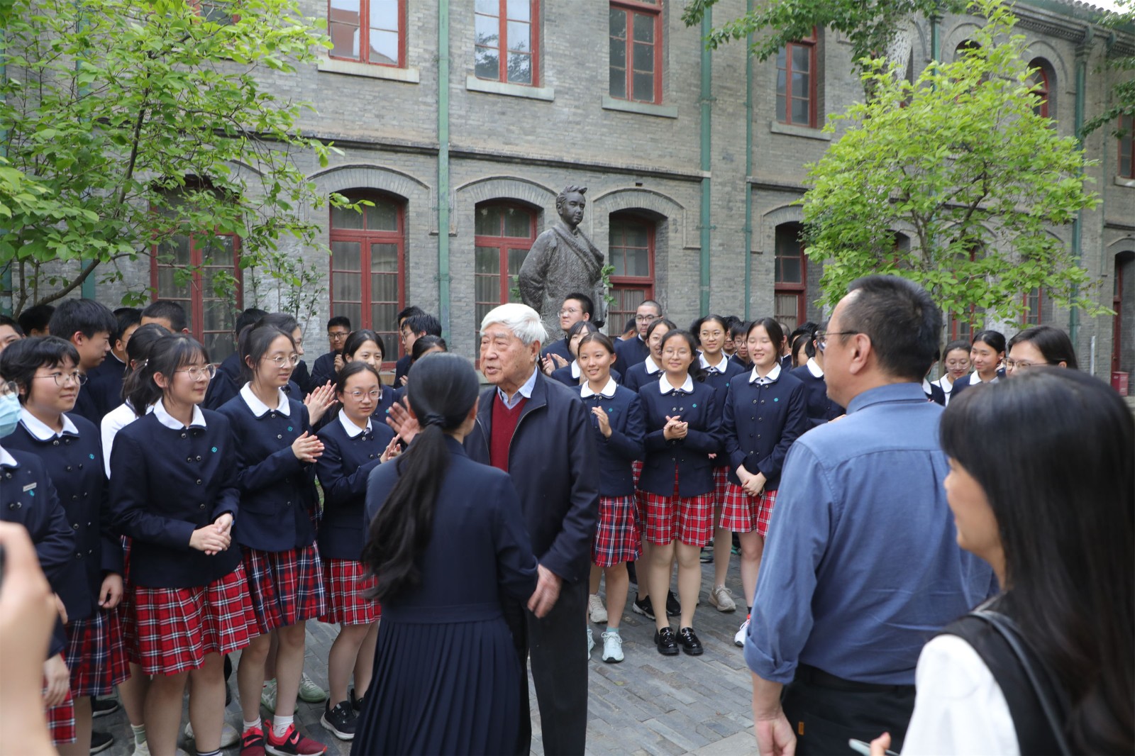 2025 年 4 月 29 日下午,著名空间技术专家、神舟飞船首任总设计师戚发轫院士走进无关键词会堂,以《中国航天与航天精神》为题,为四百余名师生带来了一场精彩纷呈的专题讲座。值得一提的是,这已是戚院士与附中的第二次“航天之约”。早在2016年,当时已年逾八旬的戚院士就曾以"航天技术与中国航天"为题,为附中学子播撒下航天梦想的种子。九年后的今天,他再次回到这个熟悉的讲台,继续讲述中国航天的故事,传承不朽的航天精神。