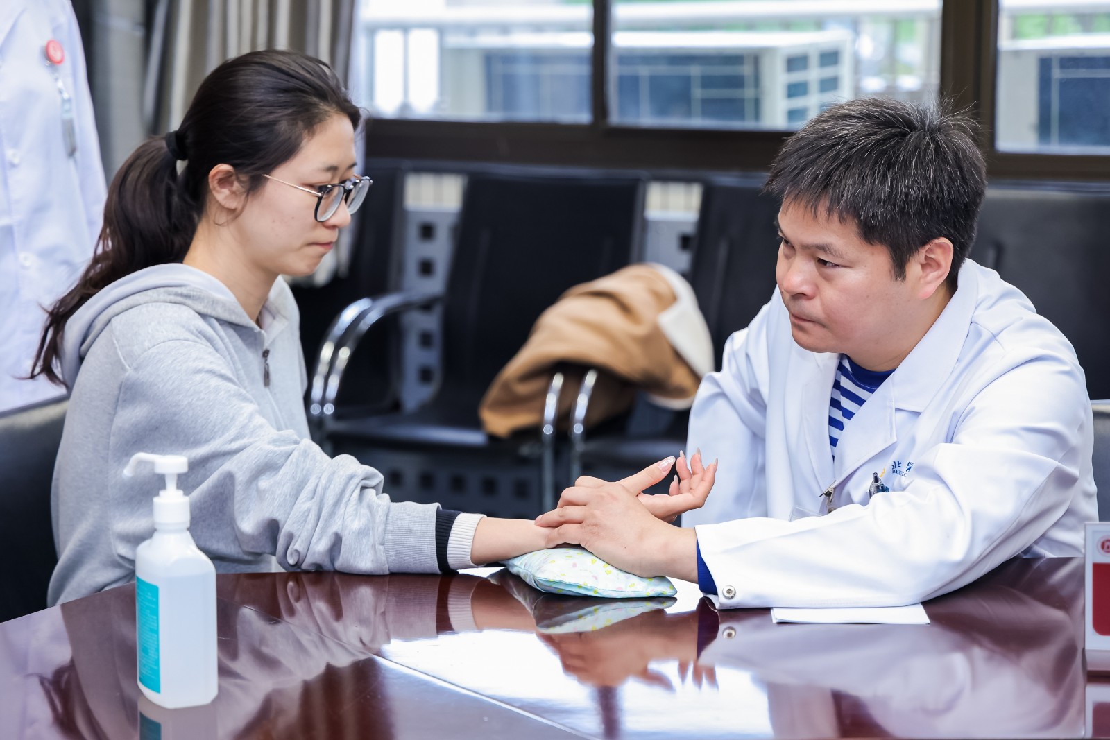 针对班主任群体普遍存在的颈椎腰椎劳损、慢性咽炎、失眠焦虑等职业病症,中医专家通过望、闻、问、切等传统中医技术,结合传统脉诊舌诊,为每位班主任老师设计健康方案。