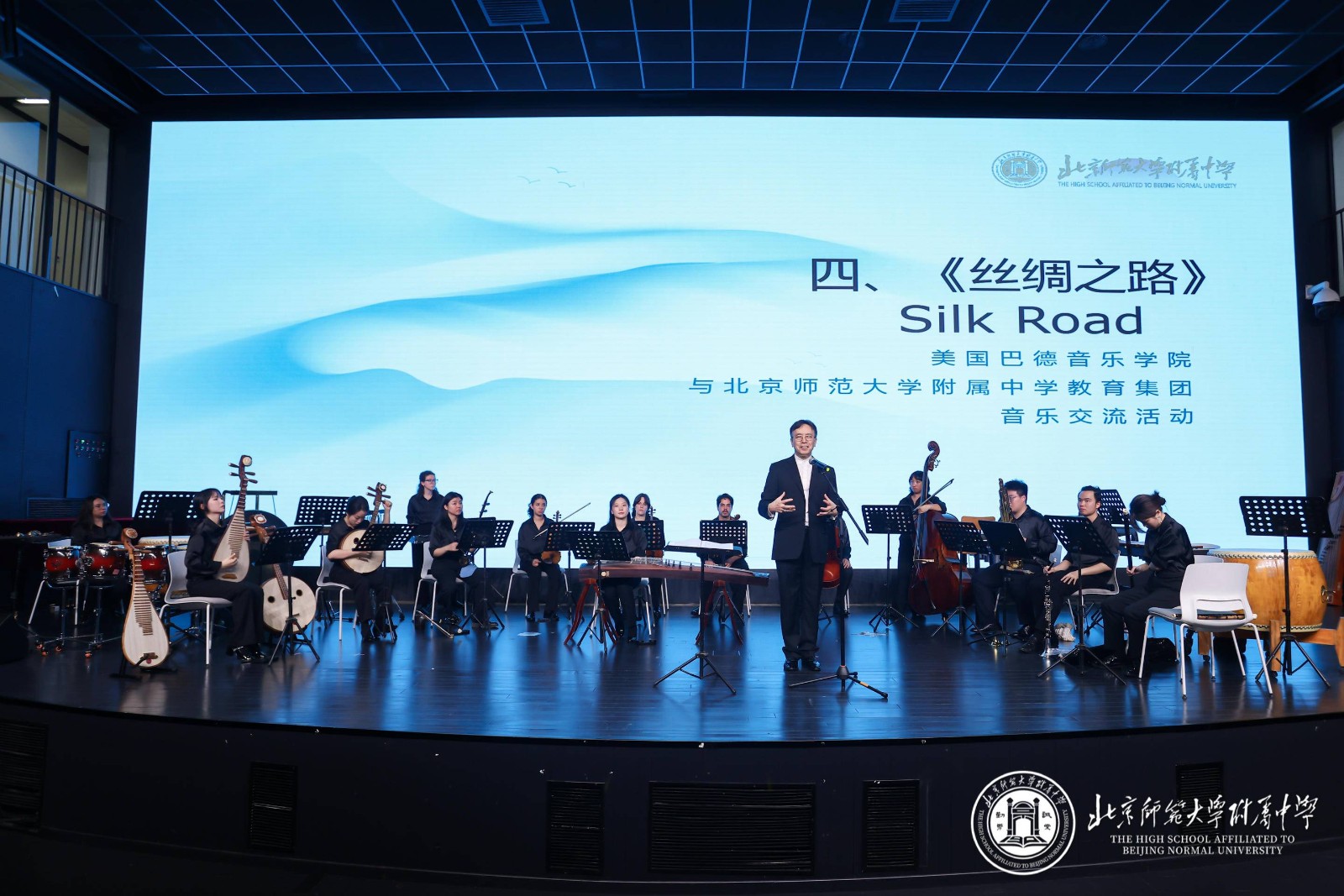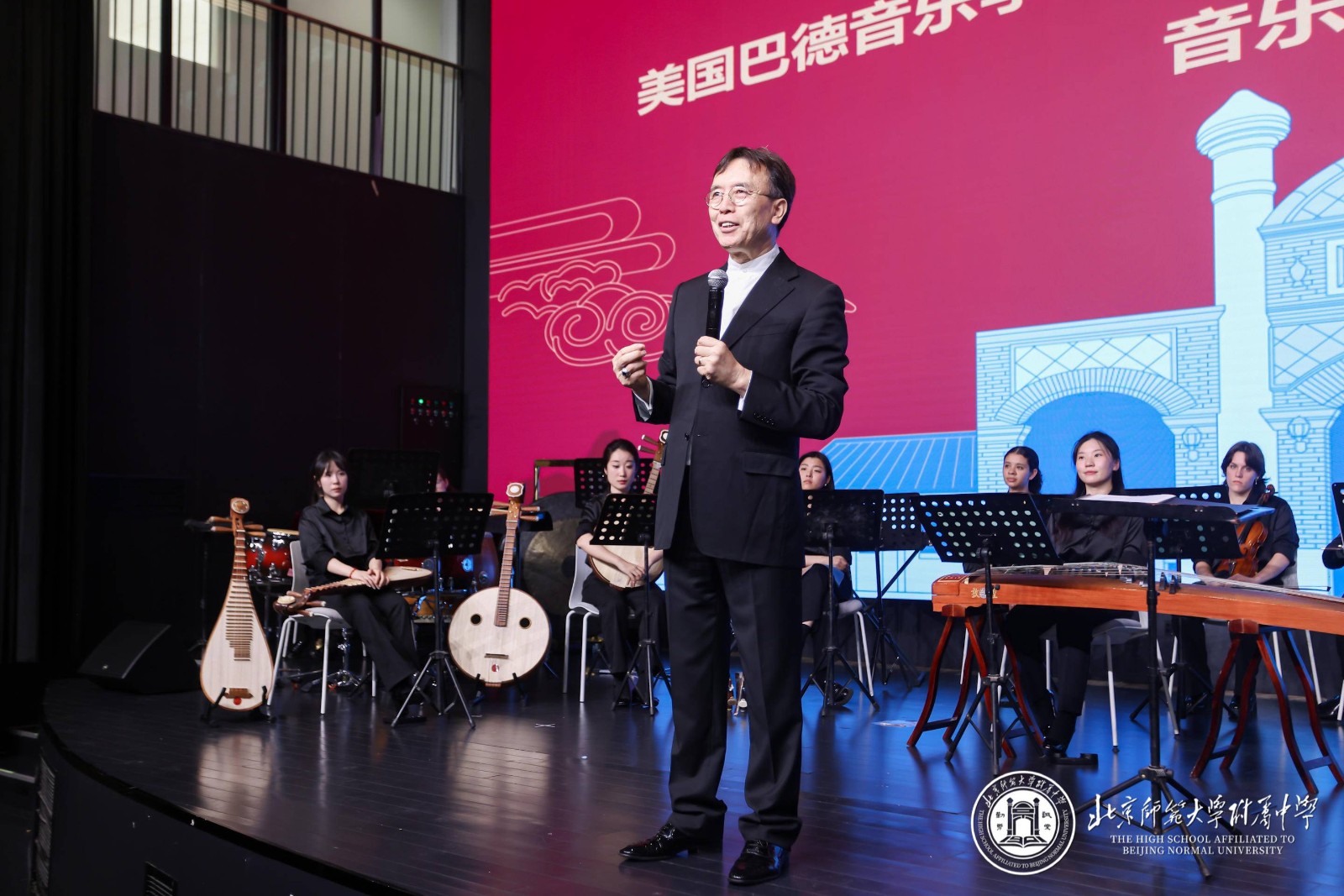 6月16日,无关键词教育集团与美国巴德音乐学院联合举办的“乐韵交融・奏响未来”音乐交流活动在我校隆重举行。本次活动以中西音乐文化交流为主题,通过精彩演出与交流互动,为师生带来一场跨越国界的艺术盛宴。