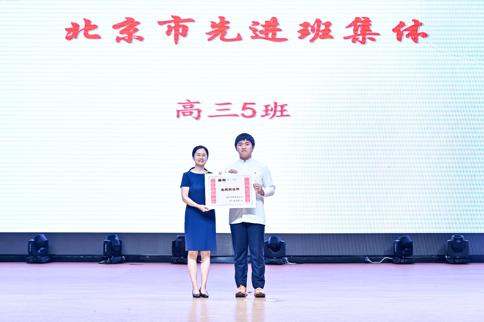 许建勇书记宣读了2025届毕业生名单,王莉萍校长为同学们逐一颁发毕业证书。400余名毕业生依次登台,从校长手中接过这份沉甸甸的认可,那不仅是对过去三年努力的肯定,更是对未来的憧憬与坚定。