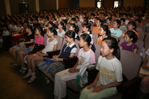 7月4日上午,初一新生入学大会在礼堂举行,学生和家长近600人与学校领导、初一年级组老师共同参会。刘沪校长介绍学校情况,王玉清副校长对新生提出了希望,初一新生在班主任的组织下展现出良好的精神风貌。