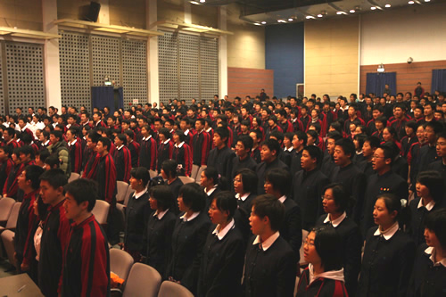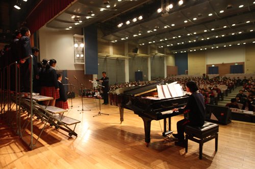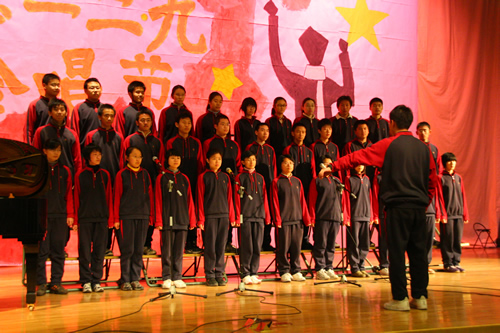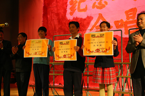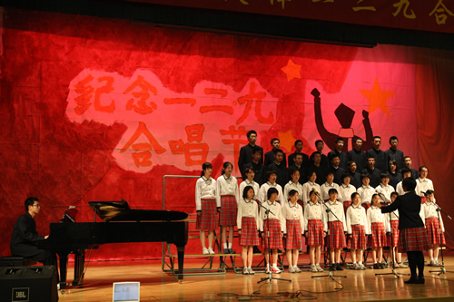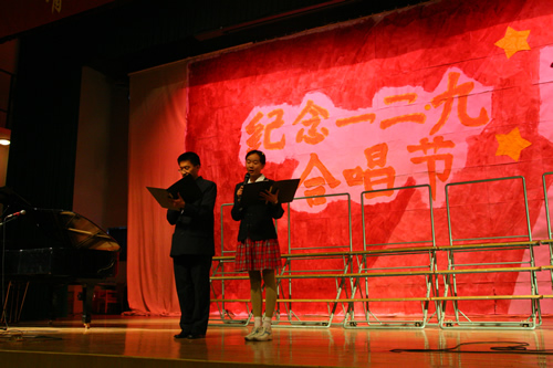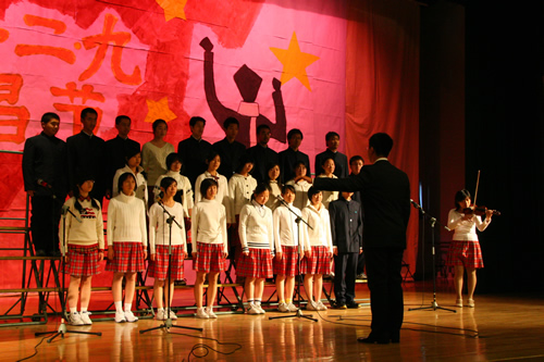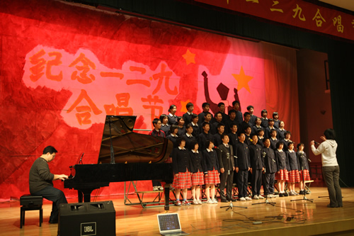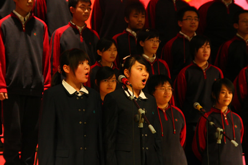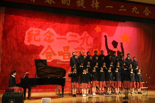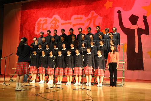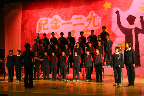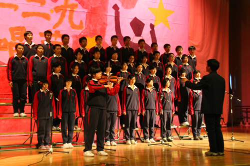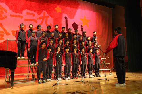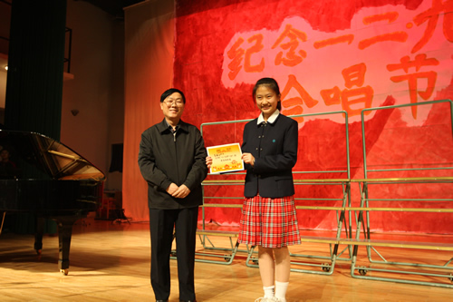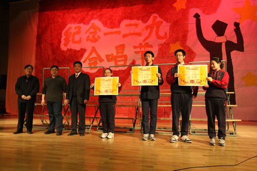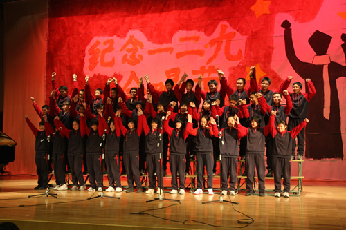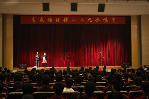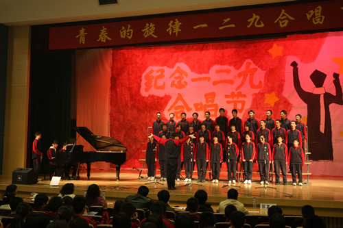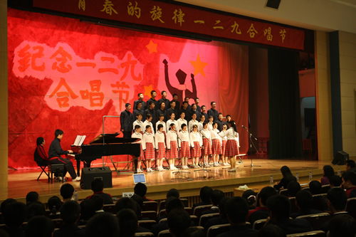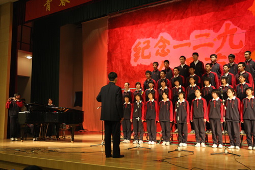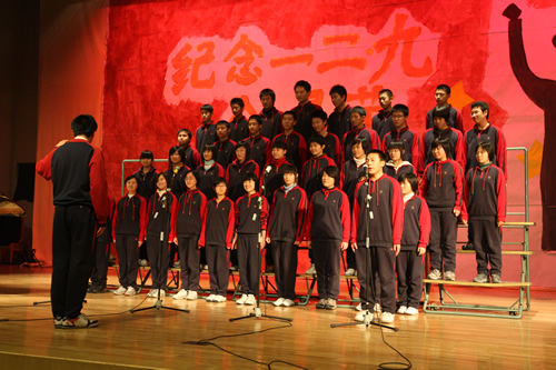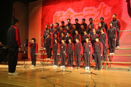 为纪念“一二 · 九”运动72周年,使学生了解历史,培养爱国主义情怀,增强历史责任感,我校高一、高二年级于12月10日、11日举办了“青春的旋律”一二 ·九合唱节。高一(3)班和高二(1)班分获年级组一等奖,李承子和吴天群同学分获高一、高二年级最佳指挥奖。