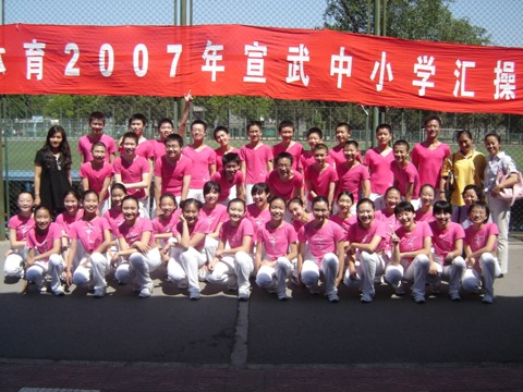 5月18日,我校由初一、初二、高一年级共40名学生组成的健美操队,参加了“宣武区中小学生课间操比赛”。为了此次比赛,这些学生在李颖老师指导下,克服重重困难,牺牲课余时间,发扬不怕苦、不怕累的精神,全身心投入到训练中,最终以饱满的热情和出色的发挥赢得了全场掌声,并获得了总分第一的好成绩。