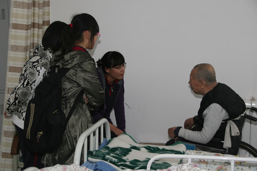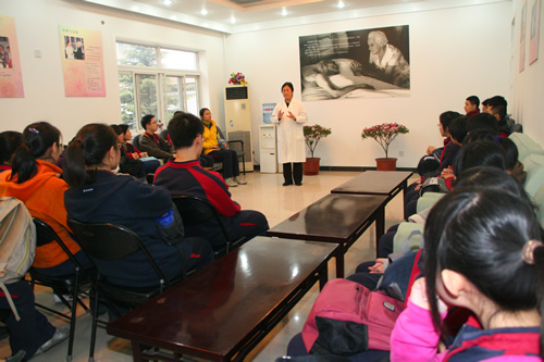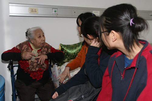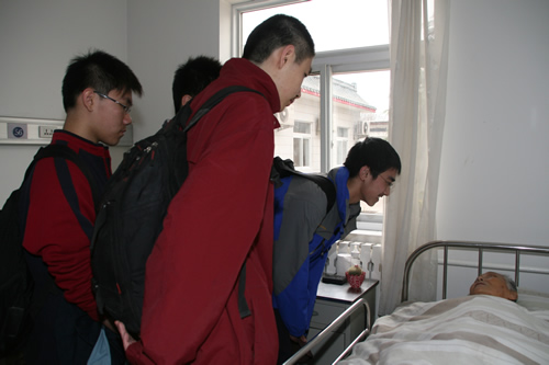 2008年3月13日下午,生命伦理学选修课的同学和部分校团委学生干部在教导处主任况莉老师和校团委书记张帅老师的带领下,来到位于昌平区天通西苑的朝阳门医院临终关怀病区,为那里的老人送上心灵的慰藉。