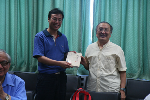 我校民进的几位德高望重的元老特级教师王树声老师、民俗大师翟鸿起老师及刘增佑、刘志鹏老先生也纷纷到会见证了他们盼望多年的、这一历史时刻的到来,并对在职新成员提出了殷切期望,翟老师还特意将他刚刚出版的新书《胡同瞬间记忆》赠予了本次大会作为纪念。