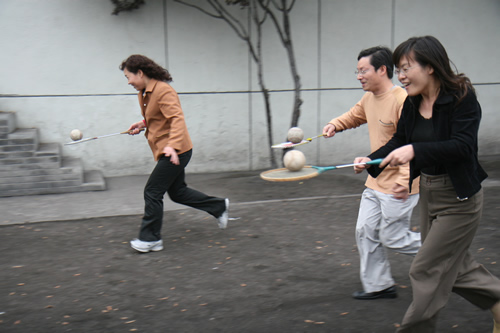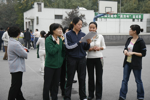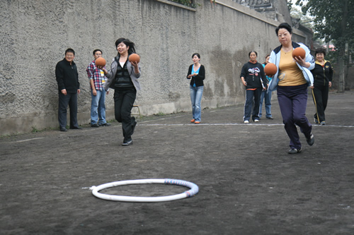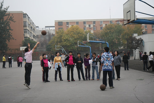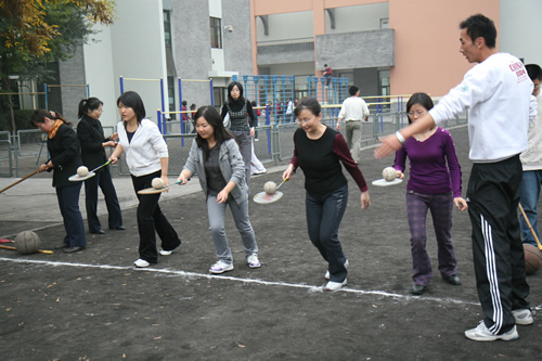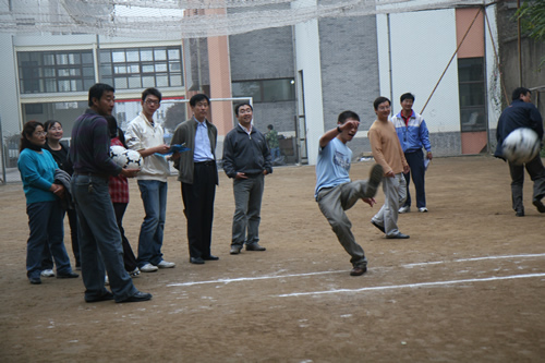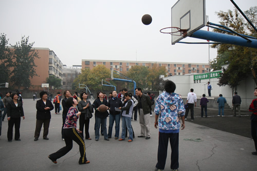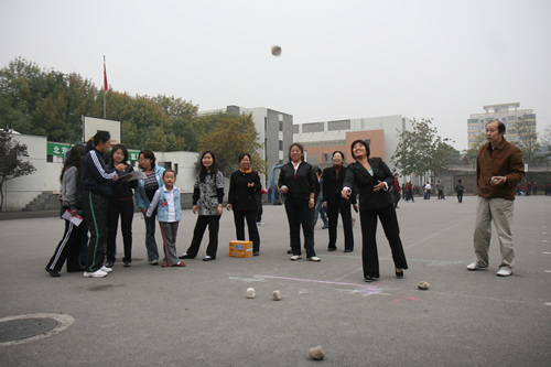 2008年10月23日下午,北师大附中操场上欢声笑语,气氛异常活跃。有近130人参加的教职工运动会在愉快而欢乐地进行着。运动会项目多样,包括30米赶猪、30米托球、30米跳绳、定点投篮、沙包掷准、定点射门、自行车骑慢、30秒跳绳和蚂蚁搬家等。各种年龄的教职员工都有机会在运动会上一展伸手,同时尽情放松着,享受着这欢乐的盛会。