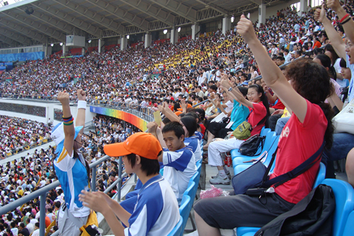 千年奥运,百年企盼!万众期待的北京奥运会终于开幕了。在奥运大赛期间,我校师生积极参与观看奥运比赛,共有一千多人次,观看了排球、足球、拳击、田径等六场次比赛。同学们来到了设施顶尖的“鸟巢”等奥运场馆,在观看精彩纷呈的赛事同时,深深感受到了强烈的民族自豪感。北京奥运会所展现的魅力与震撼给同学们带来了前所未有的感受,奥运健儿奋力拼搏,勇于争先的精神也鼓舞者我校师生,在今后的学习和工作中发扬“更快、更高、更强”的奥林匹克精神,为建设更加繁荣文明和谐的新附中而努力奋斗。