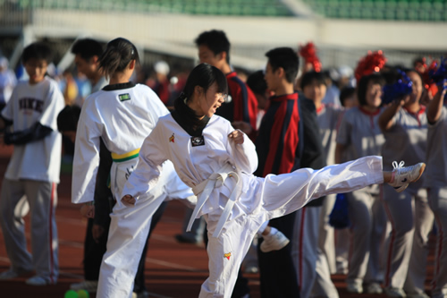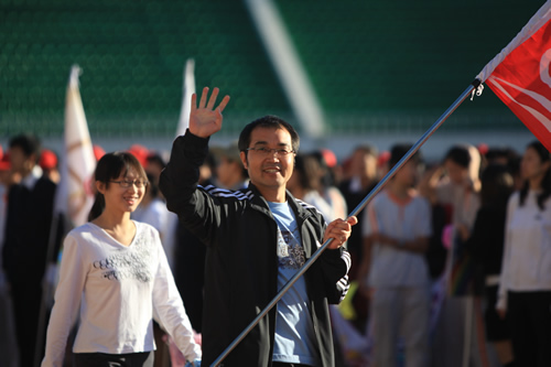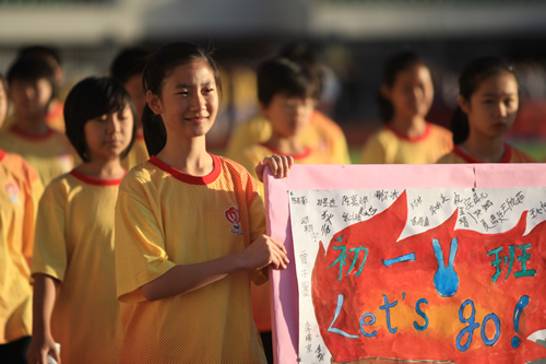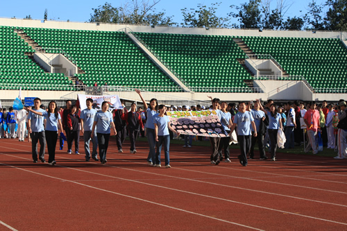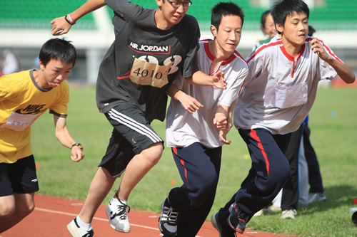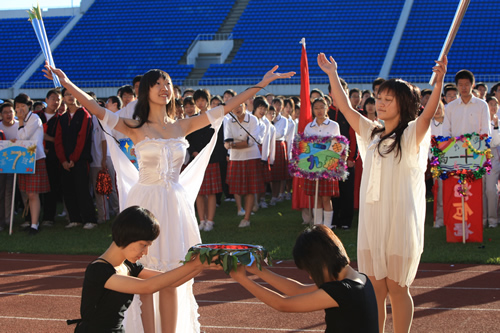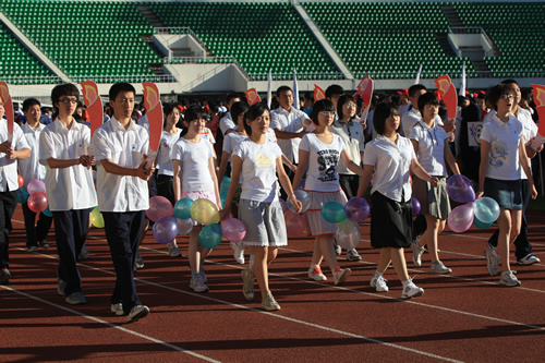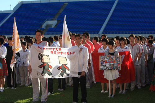 2008年9月26日,无关键词在先农坛体育场举行了秋季田径运动会。在运动会入场式上,同学们本着对世界友好和平和奥林匹克精神的理解,用自己设计的班旗和展示牌,及新颖的队形、响亮的口号、良好的精神状态展现出附中人的活力与风采,博得了在场领导和老师们的高度赞扬。尤其当高三(10)班同学骑着自行车,打出“我们爱健康,我们要环保,我们不分单双号”的条幅出现在主席台前时,赢得了现场阵阵喝彩。