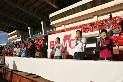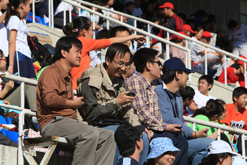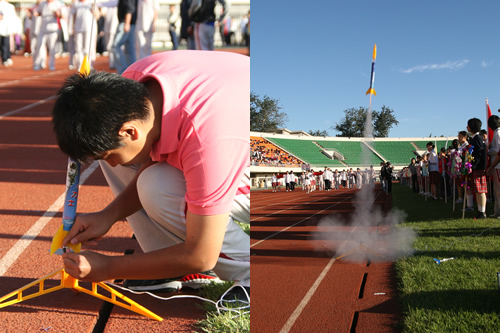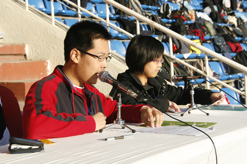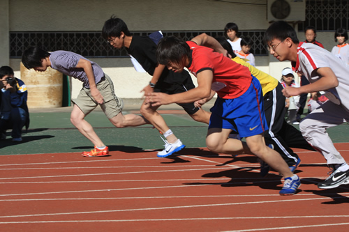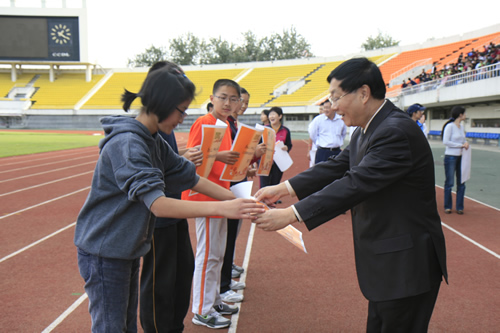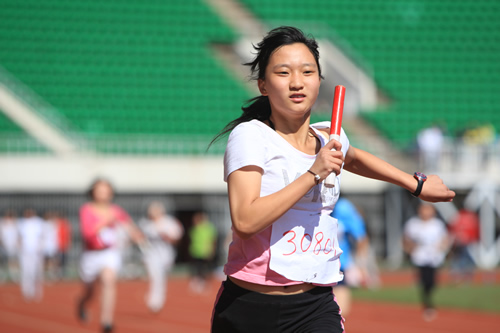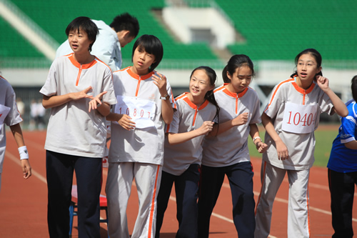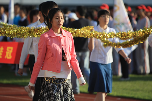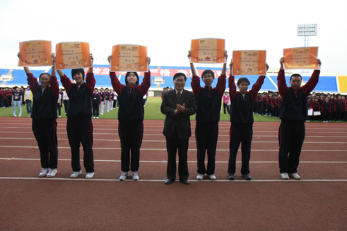 本次秋季田径运动会在公平、友好、热烈的竞赛气氛中圆满结束,运动员在赛场上发扬更高、更快、更强的奥运精神,奋力拼搏取得了骄人的成绩:高二(2)班张雪飞同学以11.75米和33.50米的成绩打破了去年由她创造的无关键词女子铅球、铁饼纪录;高一(1)班冯天龙同学以10秒9的成绩平了无关键词男子100短跑纪录。