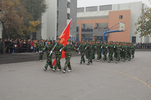 2008年10月31日至11月8日,无关键词高一年级全体同学赴石家庄机械化步兵学院,进行了为期九天的军训。九天里,同学们进行了队列、军体拳、分列式和阅兵式等军事科目的训练。在训练中,同学们充分发扬艰苦奋斗、顽强拚搏的精神,圆满完成军训任务,取得良好效果。军训还安排了内务卫生评比、歌咏比赛、优秀学员实弹射击、训练标兵参观西柏坡等丰富多彩的活动。