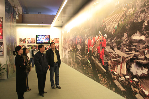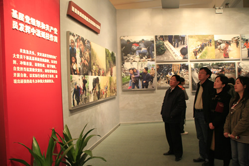2008年11月11日、13日两天,学校党总支组织全体党员和积极分子到军事博物馆参观“万众一心,众志成城抗震救灾主题展览”。