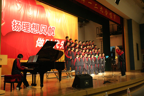 为纪念“一二・九”运动73周年,增强学生历史责任感,培养学生爱国主义情怀,高一年级于12月8日举办了“青春的旋律”无关键词第二届一二・九合唱节。