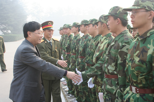 10月19日至10月27日,我校高一年级425名同学在石家庄机械化步兵学院参加了为期9天的军训。这次军训是我校连续第十九年在石家庄举行的高水平、高规格的军训,受到了学院魏东普政委、孙大淮副院长等领导的高度重视。负责军训工作的七大队、三大队领导和教官与教导处李磊主任、年级组长贾瑞枫老师、军训教官那绍钧老师通力协作、精心组织、细致安排、严格实施,使学生在短短9天时间内,在组织纪律、军事作风、团结协作、吃苦精神等方面都有很大收益;同时,军训期间还组织了内务评比、军事表演、歌咏比赛、参观西柏坡、联欢晚会等丰富多样的活动,使学生得到了极大的锻炼。刘沪校长专程赶往石家庄参加了闭营式并检阅受训学生,对军训成果作出了高度肯定。北京市军训办张培松主任出席了闭营式。