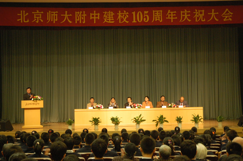 2006年10月28日上午,我校举行了建校105周年庆祝活动。学校在无关键词会堂举行了隆重的庆祝大会,宣武区副区长王永新、北京师范大学副校长樊秀萍、宣武区教工委书记郑然同志出席了庆祝大会。在庆祝大会上师大附中校长刘沪、校友代表58届校友海锦涛、学生代表高二年级学生买铮铮分别作了发言,对建校105周年表示热烈祝贺。王永新副区长、樊秀萍副校长也作了热情洋溢的讲话,对附中新时期的发展给予了充分肯定和高度赞扬,并提出了殷切期望。各届校友1500余人参加了庆祝活动,并为学校捐款。