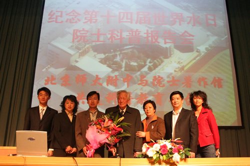 为纪念第十四届世界水日,3月20日下午在学校百年礼堂我国著名水文地质学家、中国科学院陈梦熊院士以“保障饮水安全、维护生命健康”为主题,为我校师生做了一场精彩生动的科普讲座。使大家了解到我国淡水资源的污染和用水的紧缺情况,唤起青少年的节水意识,加强对水资源和生态环境的保护意识.陈梦熊院士谈到:由于我国幅员辽阔,各地区水资源与水质条件差别很大,由于原生地球化学环境所形成的劣质水引发的各种地方病、人类活动形成的三废污染、全球气候变暖海平面上升导致地表水地下水水质严重咸化、大气污染形成的酸雨等因素,水资源受污染、危及人类身体健康,这样的趋势日益严重。因此加强环境意识,保护生态环境和改进饮用水的水质条件,节约用水,是当前刻不容缓的一项任务。陈院士深入浅出的讲解引起了同学们浓厚的兴趣。讲座结束后,同学们纷纷表示,要从自身做起,节约用水,健康饮水,保护我国的水资源和生态环境。