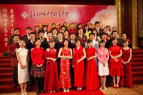 2006年4月22日,春光明媚,百花盛开。校工会、校青年教师研究会和教工团支部联合为18对新人(其中19位为本校教师)举办盛大的集体婚礼。婚礼在北京饭店金色大厅举行,新人的亲友和我校教职工共300人参加,区教育工会主席张雅玲同志、区教育工会女教职工委员会副主任赵连荣同志应邀出席。随着神圣的婚礼进行曲的奏响,18对新人手捧鲜花走上红地毯,前来祝贺的人群向他们发出阵阵欢呼。刘沪校长在婚礼上致贺词并向新人们赠送礼品,家长代表和新人代表分别在婚礼上讲话。婚礼自始至终在隆重、热烈、喜庆的气氛中进行,新人们及其亲友对学校为他们所付出的努力表示由衷的感谢。