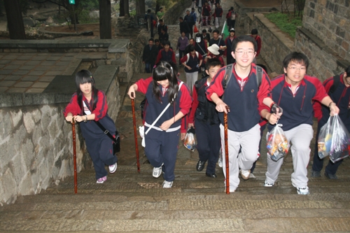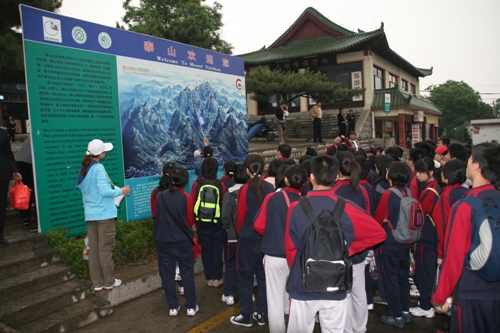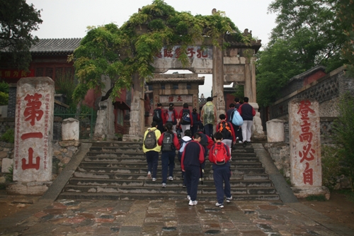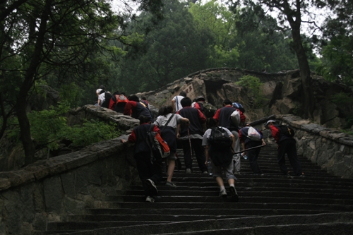 第二天早晨登泰山,泰山素有“五岳之首”、“天下第一山”之美誉,气势磅礴,拔地通天,由自然景观与人文景观融合而成。虽然天降大雾,还是掩不住同学们激动的心情。经过4小时劳累与激动的攀爬,师生们汇集于玉皇顶,喜悦激动之情溢于言表。通过自然的洗涤与文化的熏陶,同学们的意志变得更加坚强,胸怀更加博大,思想体悟更加深邃――风云变幻,泰山依旧。